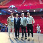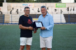 Il presidente Roberto Capezio consegna una targa ad Alessandro Masu in rappresentanza della vicinanza tra le due società, il gemellaggio tra le tifoserie, simbolo di unione sempre e comunque.